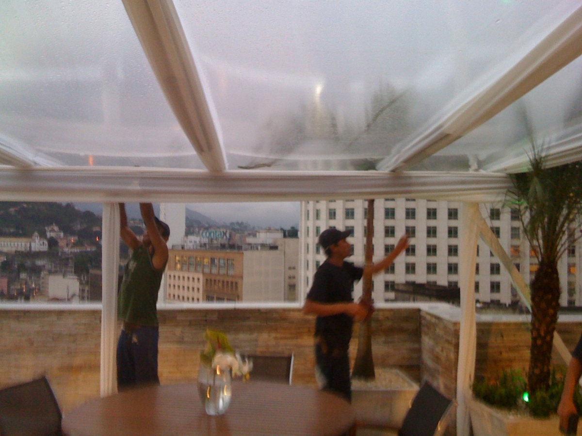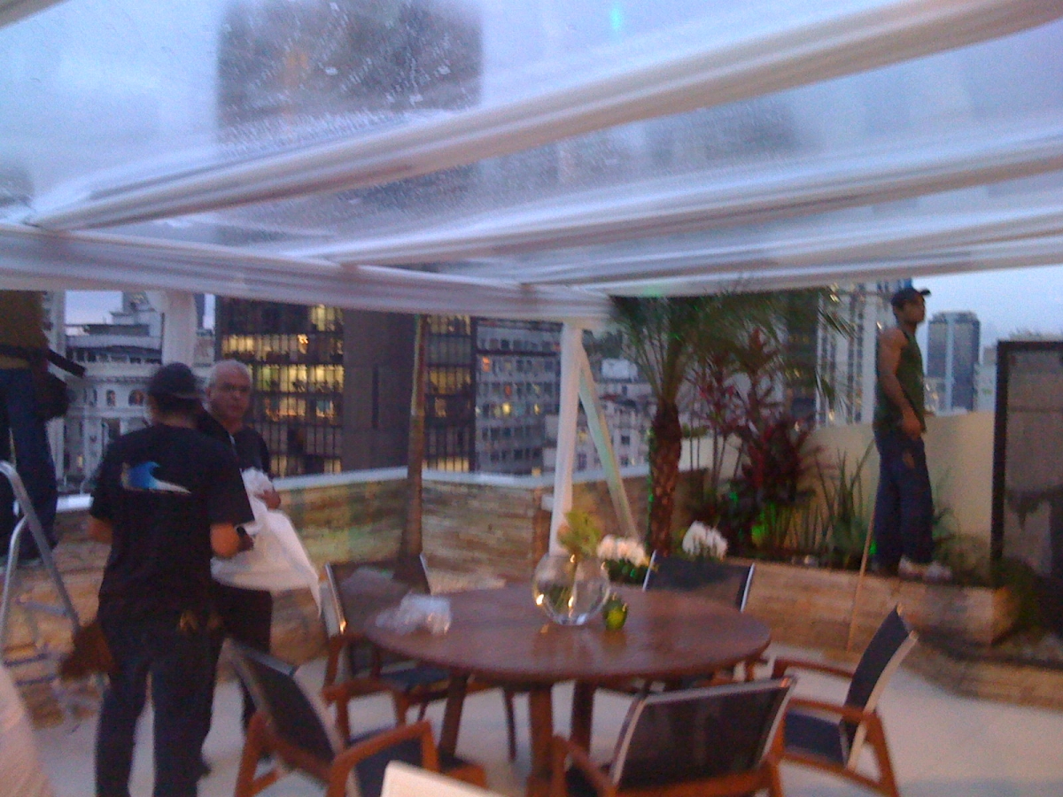 Toldos para eventos em coberturas com teto cristal transparente
