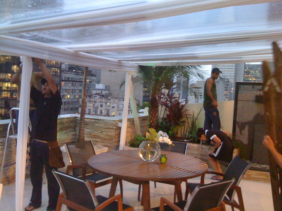 Toldo para festa e fechamento de piscina