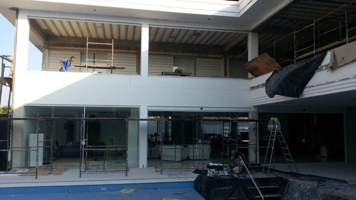 Montagem de toldo em área livre c/ cobertura cristal, branco liso ou frizado.